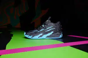 Voici la PUMA MB.03 Blue Hive ! Avec son empeigne noir et se motifs au bleu très vif, la paire fait référence à l’énergie vibrante de la ville de Charlotte et des fans de la franchise des Hornets. Le rendu visuel est réussi, avec une paire plutôt originale qui va sans aucun doute cartonner sur le marché français.
