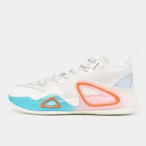 C’est la Peak Big Triangle 2 « Graffiti » qu’on a eu la chance de recevoir au bureau. Si le design de la paire est dans la moyenne, avec quelques similitudes au niveau de son empeigne avec la signature shoe de Jayson Tatum, on trouve le coloris « Graffiti » vraiment sympa visuellement : on vous propose d’ailleurs de découvrir notre shooting dédié à la Big Triangle 2 Graffiti dans un univers urbain.