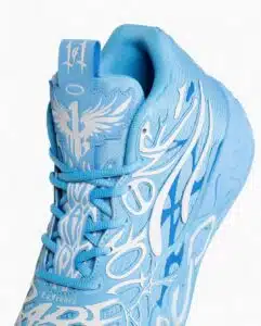 C’est officiel : la PUMA MB.04 vient d’être dévoilée par LaMelo Ball et son équipementier PUMA ! On découvre une paire haute avec un design proche de celui des derniers modèles de la ligne de signature shoe du meneur de jeu All-Star des Charlottes Hornets, dans un coloris bleu ciel, accompagné par des motifs argentés, réalisé en partenariat avec sa marque « LaFrance ».