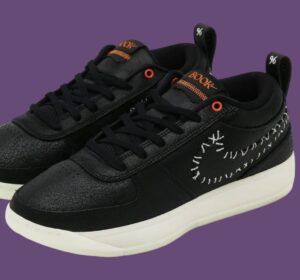 La Nike Book 1 Halloween, qui a été intitulée « Nightmare B4 Christmas » par Devin Booker himself, présente une tige principalement noire, renforcée par un cuir craquelé qui lui donne un aspect vieilli et usé, parfaitement adapté à la saison. Des accents orange apparaissent subtilement sur les œillets, la marque « Book » de la languette et les coutures de style Frankenstein. Ces détails ajoutent une touche de couleur sans dénaturer l’ensemble. Le Swoosh, bordé de coutures blanches, semble cousu à la main, rappelant l’esthétique DIY souvent associée à Halloween. Le talon porte la mention « Chapter One », stylisée avec une police déchiquetée qui s’intègre harmonieusement au reste du design.