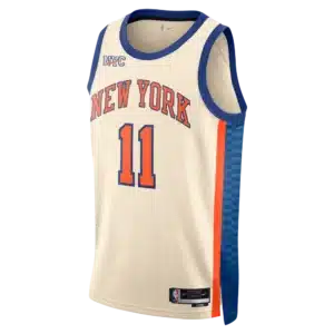 Le maillot City Edition 2025-2026 des New York Knicks conserve les coloris historiques bleu et orange de la Big Apple, avec une superbe inscription « New York » au niveau du torse. On vous présence ici le numéro 11 de la superstar des Knicks, le meneur All-Star Jalen Brunson. Un maillot qui va beaucoup plaire aux fans !