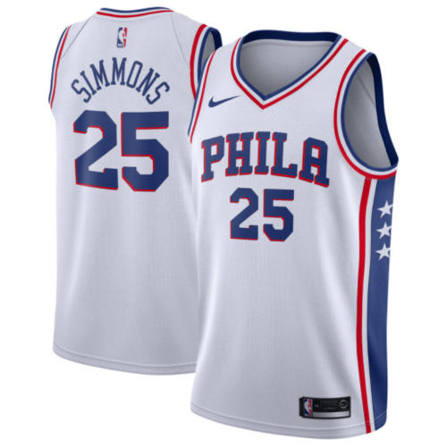 Le maillot Association Edition (blanc avec l’inscription « Philadelphia » en bleu et rouge) pour les matchs à domicile, le maillot Icon Edition (bleu avec « Philadelphia » en blanc et rouge pour les matchs à l’extérieur, le maillot Statement Edition pour les matchs à fort rivalité, et enfin, le maillot City Edition, qui change chaque année, pour les matchs à fort enjeux.