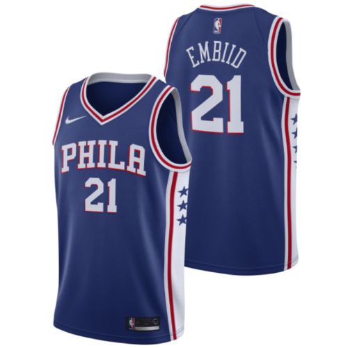 Depuis son arrivée en NBA en 2016, Joel Embiid a toujours joué pour les Philadelphia 76ers, avec le numéro 21. Il a porté plusieurs types de maillots :