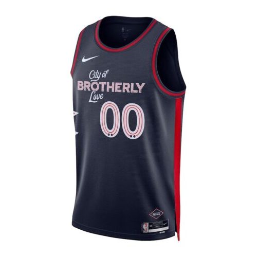 2021-2022 : Maillot bleu avec des étoiles et une référence aux anciens Sixers.