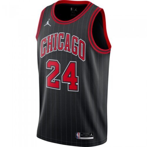 - 2023-2024 : Inspiré par le Chicago Stadium, ce maillot noir arbore une inscription verticale « Chicago » et une étiquette « Madhouse on Madison » sur l’ourlet, rendant hommage à l’ancienne arène légendaire des Bulls.